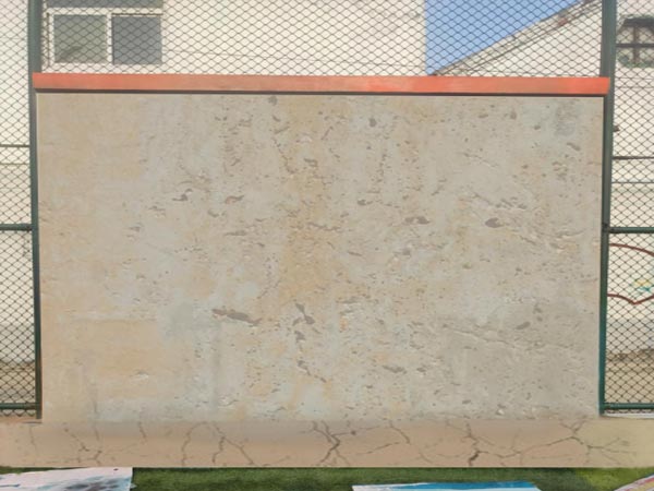 足球場的水泥墻上光禿禿的顯得整個球場很荒涼。這是我們沒開工前的樣子