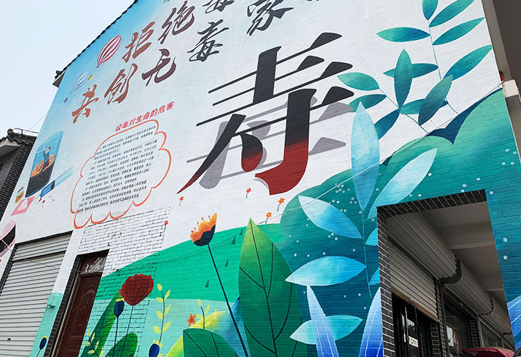 社會(huì)公益墻繪右邊壽命的“壽”字下面潛藏著毒品的“毒”